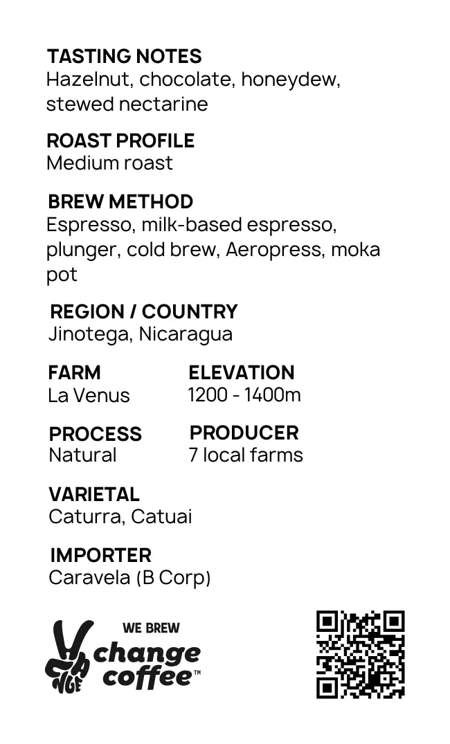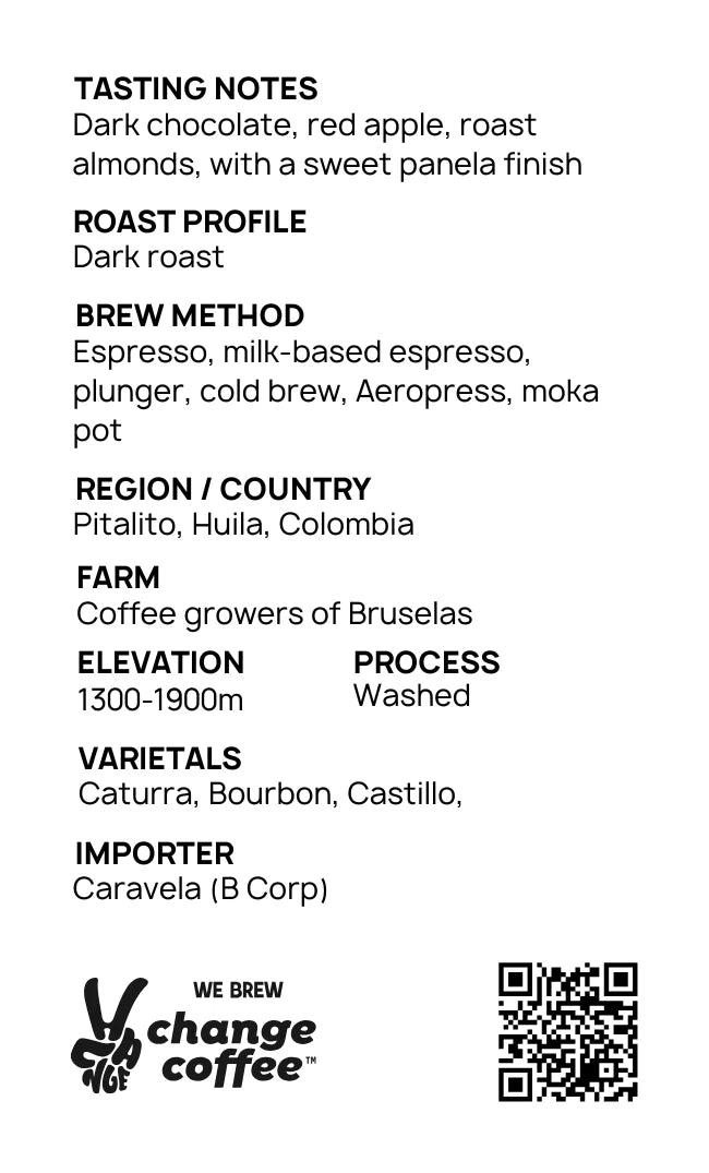 Smooth flavours of dark chocolate, red apple and roast almonds. It cuts milk beautifully, but it holds it’s own as a well-balanced full-bodied black coffee. More info →
