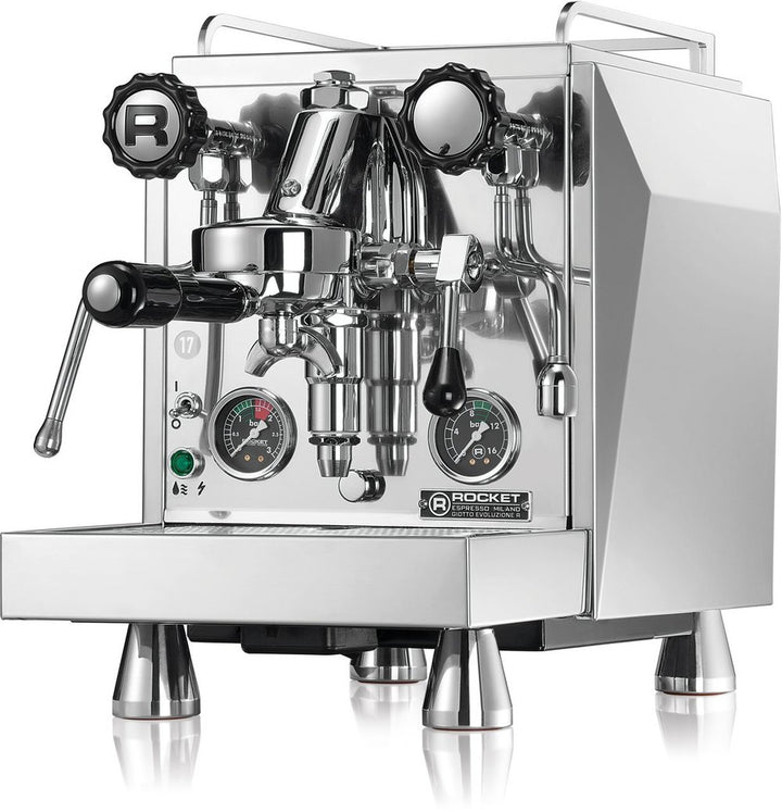 The Rocket Giotto Evoluzione R is an upgrade of the Rocket Gitto Type V. It offers: standard PID temperature control, standard stainless steel cup surround, near silent rotary pump, can be plumbed into mains water if required and features adjustable feet.Features taken directly from the Rocket Espresso commercial espresso machine range give the Evoluzione superior technology that is normally only found in full sized commercial espresso machines.
