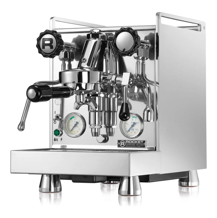 Introducing the new Rocket Mozzafiato Cronometro Type V now with digital shot timer allowing the user to better optimise extraction time. Temperature control is optimised through a PID controller drawing on 4 different signal parameters to ensure stability and optimum results in the cup.